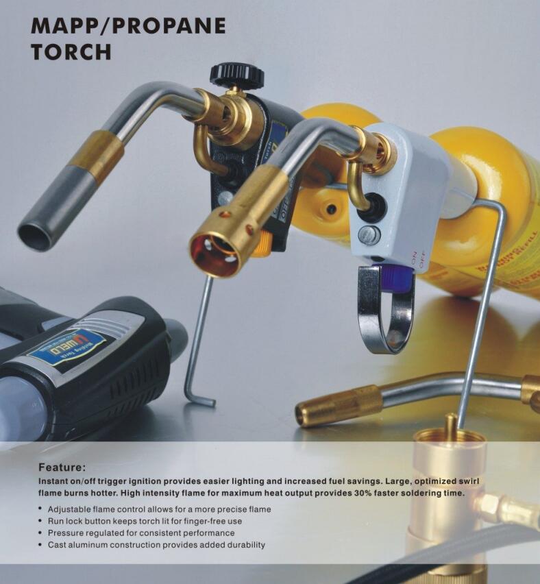 Uweld Double Hand Flame Gas Torch Head with Porpane Kit Gas Welding Dual Tubes Nozzle Fuel By Mapp
